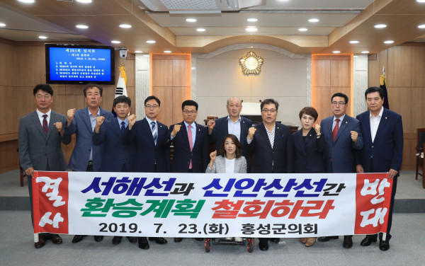 [홍성=최진우 기자] 충남 홍성군의회가 23일 제261회 임시회 개회에 앞서 '서해선과 신안산선 간 환승계획 철회 촉구 결의안'을 만장일치로 채택했다.