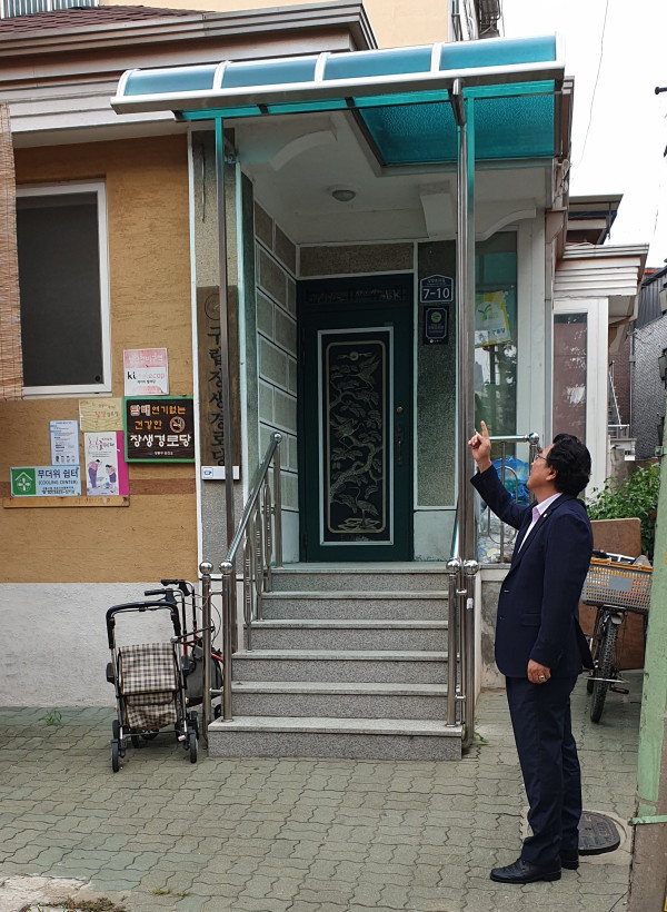방 의원에 따르면 암사동에 위치한 구립 장생경로당(상암로23길 7-10)의 주출입구는 상부가 외부에 그대로 노출돼 있어, 그동안 강우 및 강설시 미끄러움 등의 낙상사고 위험에 무방비한 상태로 개선이 시급한 곳이었다.