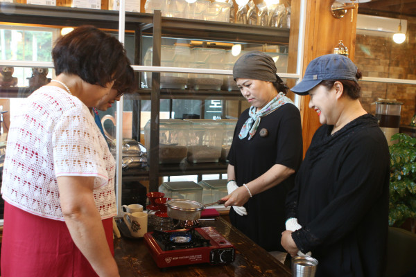 경기 양주시는 지난 19~29일 기간 중 3회에 걸쳐 농촌여성 대상 생활문화교육을 진행했다. ‘커피’를 주제로 진행한 이번 교육은 농촌여성의 삶의 질 향상과 여가시간 활용을 위해 마련했으며 회당 16명씩 총 48명의 농촌여성이 참여했다. 사진은 29일 참여자들이 원두커피를 볶아보는 모습. (사진제공=양주시청)