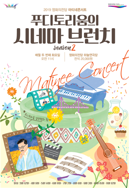 2019 영화의전당 마티네콘서트 여섯 번째 공연이 오는 8월 6일 오전 11시에 영화의전당 하늘연극장에서 개최된다. 지난 3월 12일부터 시작된 영화의전당 마티네콘서트는 ‘푸디토리움의 시네마 브런치 시즌2’라는 타이틀로 매월 둘째 주 화요일 오전 11시에 진행되고 있다. (8, 9월은 다른 행사로 인해 한주 앞당겨 첫째 주 진행)