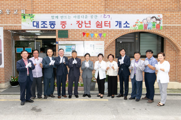30일 은평구 루터교회의 유휴공간에 전국 최초의 중·장년을 위한 열린 공간 ‘터’가 문을 열었다. 이곳에서는 건강 및 복지상담, 일자리 상담, 동아리 활동 등이 진행될 예정이다. 사진은 개소식에 참석한 김미경 구청장(왼쪽 여섯 번째)가 관계자들과 기념촬영을 하고 있는 모습. (사진제공=은평구청)