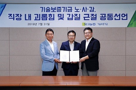 이날 선언식에서는 기보 정윤모 이사장, 채수은 노동조합 위원장, 박세규 감사가 공동으로 갑질 근절 선언문을 낭독했다. 선언문에는 ▲직원들의 인권 보호 ▲직장 내 괴롭힘 및 갑질 근절 노력 ▲피해발생 시 직원 보호 및 재발 방지대책 마련 등이 포함됐다.