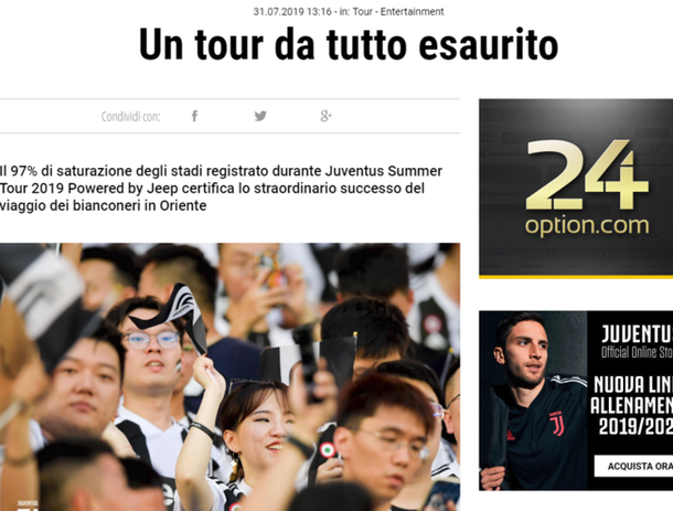 유벤투스는 31일(한국시간) 자신들의 공식 홈페이지에 "프리 시즌 아시아 투어가 대성공을 거뒀다. 싱가포르-난징-서울 모든 경기가 매진됐다"고 자화자찬했다.