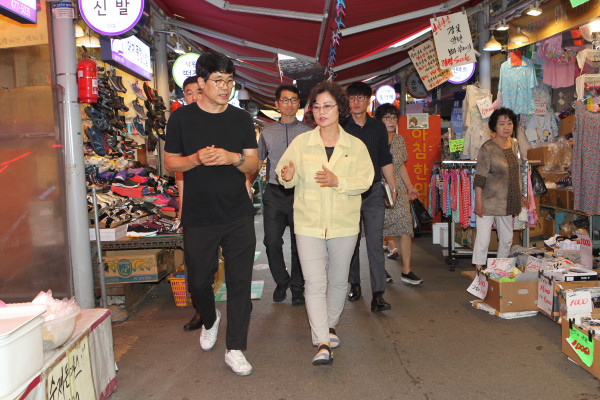 [시민일보=이대우 기자] 박희자 서울 강동구의회 의원(성내 1·2·3동)이 최근 화재가 발생한 '둔촌역 전통시장'을 방문해 전체적인 시장의 안전사항을 점검하고, 상인회장 등 상인들을 만나 불편 및 애로사항 등의 민원을 들었다.
