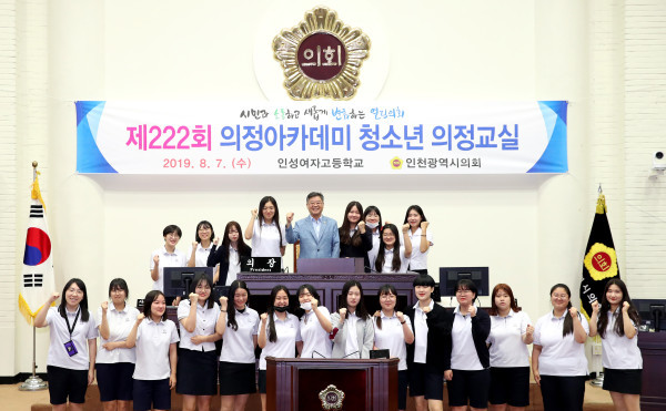 [인천=문찬식 기자] 인천시의회는 7일 인성여자고등학교(중구 송학동) 학생 22명이 참가한 가운데 '제222회 의정아카데미 청소년 의정교실'을 열었다.