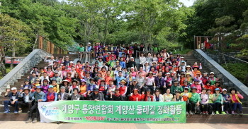 계양구 통장연합회(회장 김광호)는 6월 5일 회원 100여명과 함께 계양산 산지정화 활동을 실시하였다.최근 건강에 대한 관심이 높아짐에 따라 계양산을 찾는 등산객이 급증하여 등산객이 버리고 간 각종 오물 등을 수거하는 산지정화 활동으로 지역의 최일선에서 활동하고 있는 통장들 스스로 인천의 진산인 계양산을 보호하고자 매년 연 2회 정기적으로 실시하고 있다.