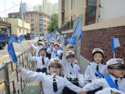 [시민일보]최근 서울 성동구 구립마장어린이집 원아들이 성동경찰서의 지원을 받아 일일 교통체험 캠페인에 참가했다. 어린이들이 경찰복장을 한 채 깃발을 들고 행진하고 있는 모습.