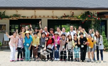 부평구(구청장 홍미영)는 최근 충북 충주시 ‘깊은산속옹달샘’에서 3월부터 5월까지 기본 교육을 한 뒤 심화과정으로 직원 대상 치유 프로그램을 ‘힐링 교육’을 실시했다. 사진은 프로그램에 참여한 공무원들이 기념촬영하는 모습.