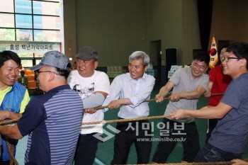경기 오산시(시장 곽상욱)는 지난 9일 죽미실내체육관과 체육공원에서 세마동 주민 등 1,000여명이 참여한 가운데 ‘제20회 세마동 한마음 축제’를 개최했다. 사진은 곽상욱 오산 시장을 비롯한 주민들이 줄다리기를 하는 모습.