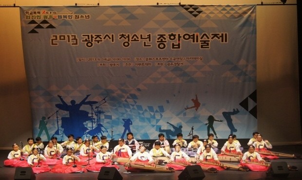 최근 광주시 문화스포츠센터에서 2013청소년 종합예술제”가 열렸다. 사진은 참가학생들의 국악연주공연 모습