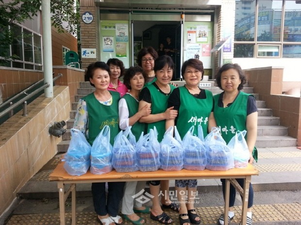 지난 20일 경기 고양시 마두1동 부녀회(회장 안진수)는 매달 넷째주 금요일을 사랑의 밑반찬 나누기 봉사활동의 날로 정하고 ‘사랑의 밑반찬 나누기’ 봉사활동을 실시해 관내 홀몸노인 가정 30여 세대에 손수 만든 밑반찬을 나누어 주는 활동을 전개하고 있다. 사진은 마두1동 부녀회원들의 모습.