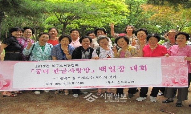 [시민일보]지난 25일 인천북구도서관에서는 ‘꿈터 한글사랑방’의 문해 학습자를 대상으로 백일장 대회를 개최하였다. 사진은 백일장 대회에 참가한 학습자들의 모습.