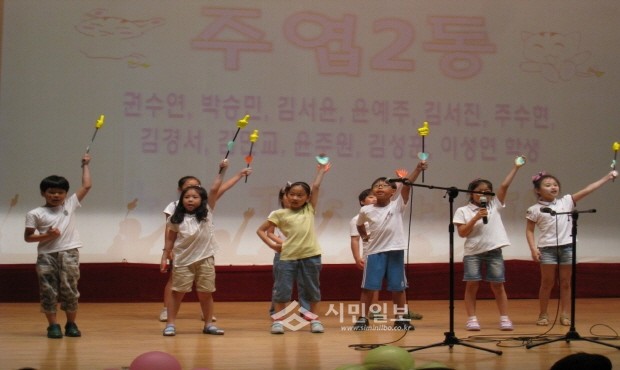 [시민일보]경기 고양시청 문예회관에서 최근 고양시 원어민영어교실 콘테스트가 열려 초등 3~4학생 수강생 123명이 참가했다. 대회에 출전한 어린이들이 영어 공연을 선보이고 있는 모습.