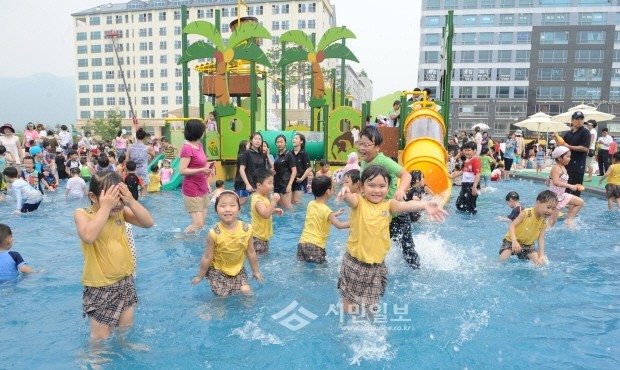 [시민일보]지난 1일 하남시는 덕풍동 풍산 근린3호공원에 테마파크형 친수 공간 및 휴식공간 조성을 위한 '근린공원 물놀이장 준공식'을 가졌다.사진은 개장한 물놀이장에서 신나게 놀고있는 아이들의 모습.