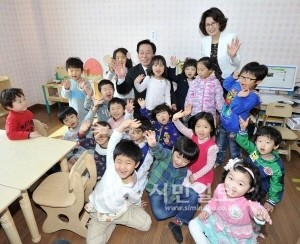 | ▲ 경기 광주시는 시민중심 책임행정, 인재양성 교육도시, 문화복지 행복도시 등을 지난 7년 동안 숨가쁘게 진행해왔다. 사진은 조억동 광주시장이 개원한 태전어린이집을 방문하여 아이들과 기념촬영하는 모습. | ||