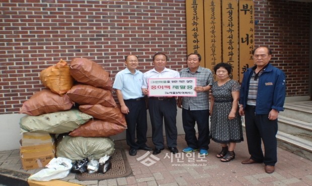 [시민일보]계양구 효성2동 뉴서울3차아파트(자치회장 이한기)가 최근 자원재활용 촉진 및 환경보전을 위한 종이팩 분리배출 사업으로 그 동안 주민 스스로 모아온 종이팩 50kg과 함께 폐휴대폰, 폐건전지 등을 효성2동 주민센터(동장 서점석)에 전달하였다.