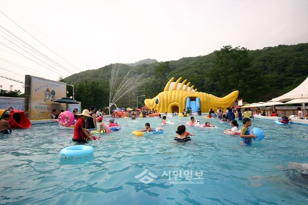 [시민일보]5일 경기 포천 산정리마을회는 영북면 산정호수에서 내달 25일까지 ‘제4회 천렵체험 및 물놀이축제’를 개최한다고 밝혔다. 이번축제는 안전행정부로부터 마을기업으로 선정된 산정리마을회에서 관 광객에게 다양한 여름철 놀이거리를 제공한다. 사진은 수영장에서 물놀이를 즐기고 있는 아이들의 모습.