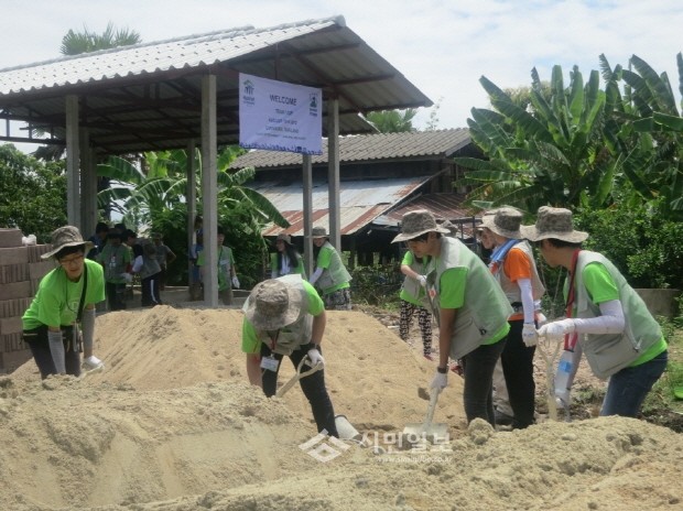 영등포구(구청장 조길형)는 고등학생 36명과 지도교사 4명이 필리핀 마닐라에서 내달1~9일 8박9일간 글로벌 리더십 프로그램의 일환인 해외봉사활동을 실시한다. 봉사단은 마닐라의 빈민 가정을 위한 집짓기 활동을 지원하고 고아원을 방문하는 등의 봉사를 하게된다. 사진은 지난해 해외봉사단이 현지의 공사를 돕고있는 모습.