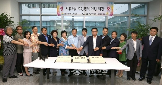 [시민일보] 금천구는 오전 9시 시흥2동주민센터의 금천종합복지타운으로 이전을 완료하고 개관식을 열었다. 사진은 관계자들이 개관식에서 케이크를 자르는 모습.