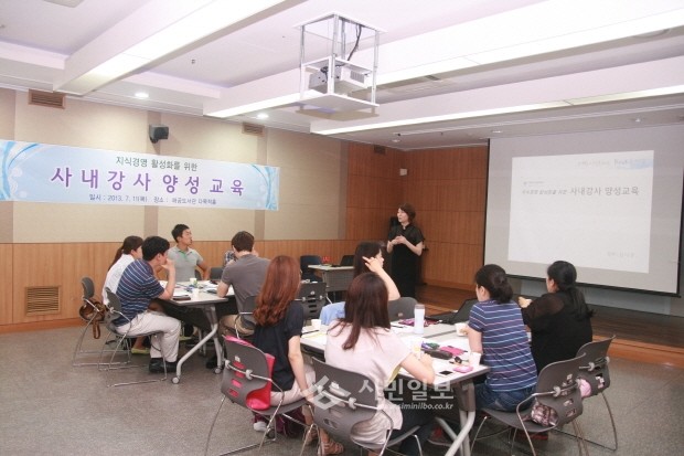 [시민일보]지난11일 강동구도시관리공단은 해공도서관 다목적홀에서 사내직원 12명을 대상으로 ‘지식경영 활성화를 위한 사내강사 양성 교육’을 실시했다. 사진은 교육중인 모습