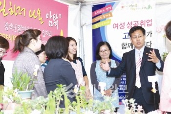 | ▲ 고양시는 일자리가 풍부한 자족도시를 지향한다. 사진은 취업 행사에서 최성 시장이 대화를 이끌어가는 모습. | ||