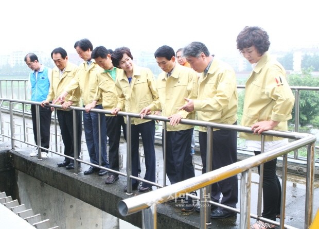 [시민일보]송파구의회 도시건설위원회(위원장 남창진)은 지난23일 탄천·잠실 유수지 및 빗물펌프장과 탄천주차장 현장을 방문해 집중호우시 주민들의 침수피해 예방을위해 점검에 나섯다. 사진은 도시건설위원들이 펌프장 시설을 둘러보고있는 모습.