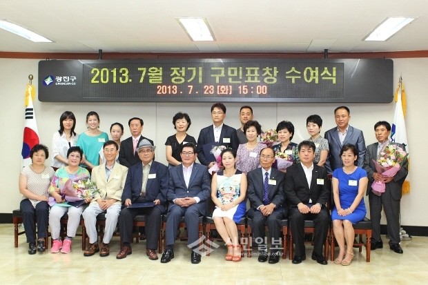 [시민일보]지난 23일 서울 광진구청에서 주최하는 ‘구민표창 수여식'에서 시니어 레지던스 더클래식 500이 지역 사회를 위해 후원을 실천한 공로로 표창을 받았다. 사진은 수상식후 더클래식500이 기념촬영을 하고 있는 모습.