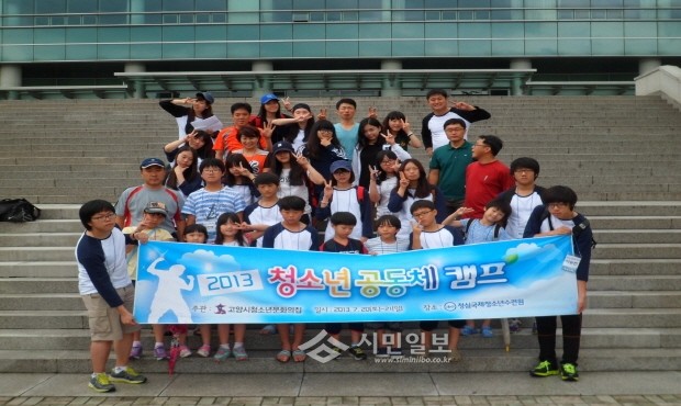 경기 고양시는 지난 20~21일 1박 2일간 가평 청심청소년수련원으로 고양시-KB국민은행 배움누리 저소득청소년 25명이‘공동체 여름캠프’를 다녀왔다.사진은 여름캠프 참가자들이 기념촬영하는 모습.