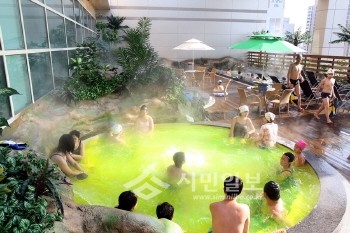 | ▲ 온천수를 사용한 워터파크인 워터조이 7층 이벤트스파에서 한가히 피로를 풀고있는 사람들. | ||