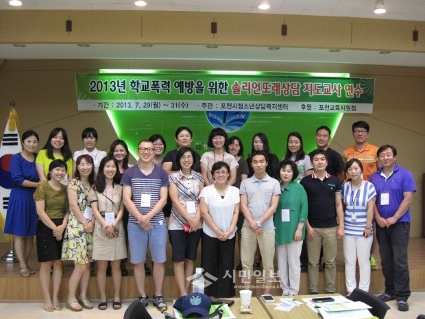 지난 31일 경기 포천시청소년상담복지센터는 지역내 중·고등학교의 교사 및 학교전문상담사 등 24명을 대상으로 '또래 상담 지도교사 양성 교육'을 완료했다. 사진은 교육 참가자들이 기념사진을 촬영하고있는 모습.