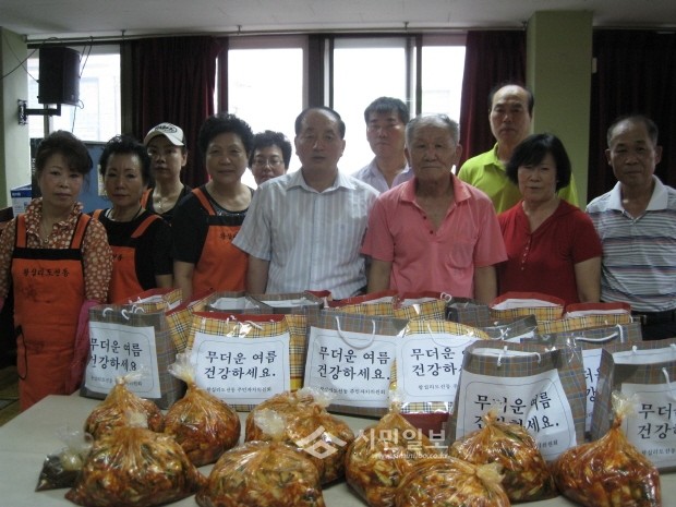서울 성동구 왕십리도선동 주민자치위원회와 마중물복지협의체는 지난 31일 홀몸노인 30가구에 김치와 쇠고기 장조림 등 밑반찬을준비해 전했다. 사진은 밑반찬을 준비한 왕십리도선동 주민자치위원회의 모습.