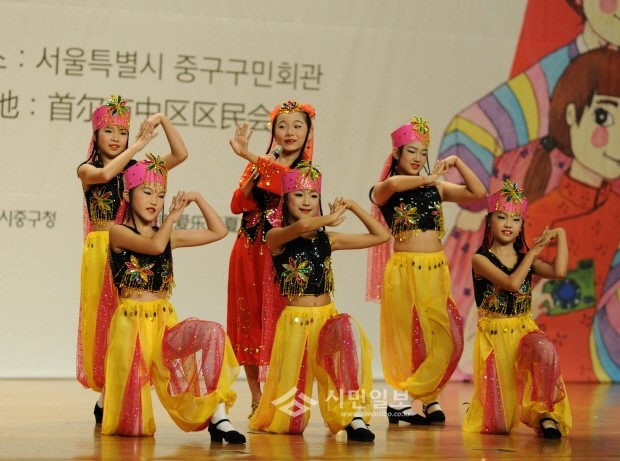 [시민일보]중구는 지난 6일 구민회관 대강당에서 중국의 청소년 공연팀, 학생, 학부모 등 250여명이 참석한 ‘제2회 한ㆍ중 청소년 문화교류 행사’를 열었다. 사진은 허페이시소년궁 학생 6명이 노래와 무용 '따오랑소녀'를 공연하고 있는 모습.