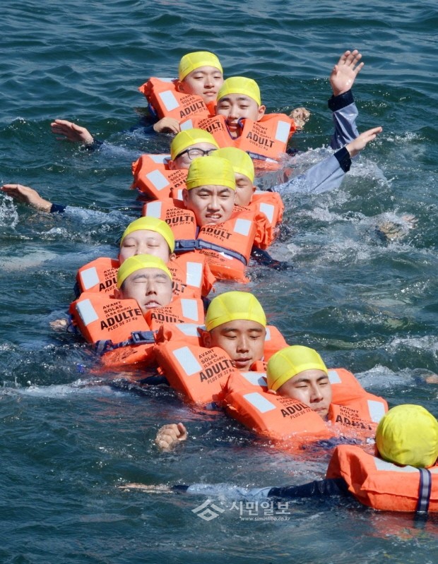 이날부터 23일까지 진행되는 한국해양대 해양훈련은 이 대학 해사대의 필수 교과목으로, 해군 SSU 해난구조대에서 파견된 10명의 교관 지도 아래 해상에서의 개인 생존기법과 인명구조 등을 익힌다.