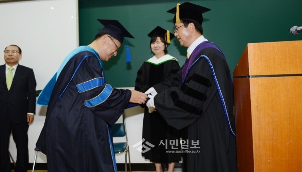 [시민일보]복지예산의 효율적 사용과 복지 사각지대 해소 에 관련된 전문적 소양을 쌓기 위해 지난 2011년 단국대학교 행정법무대학원 사회복지학과에 입학한 오산시의회 최웅수 의장이 지난 16일 단국대학교 행정법무대학원 사회복지 석사학위를 취득했다. 사진은 최웅수 오산시의회 의장이 졸업식을 갖고있는 모습.