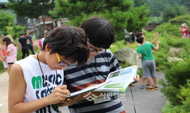[시민일보]경북 구미교육청 부설 영재교육원 지난 17~18일 1박2일로 충북 제천에 있는 별새꽃돌자연탐사과학관에서 '2013 구미 우듬지 영재 캠프'를 개최하였다. 사진은 야생화를 관찰하고 기록하고있는 아이들의 모습,