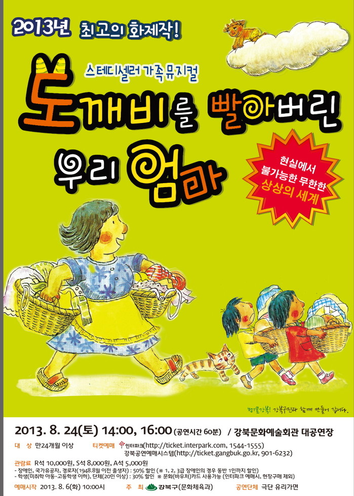 [시민일보]강북구(구청장 박겸수)는 오는 8월 24일(토) 오후2시·4시, 강북문화예술회관 대공연장에서 어린이 스테디셀러 가족뮤지컬 「도깨비를 빨아버린 우리 엄마」를 공연한다.