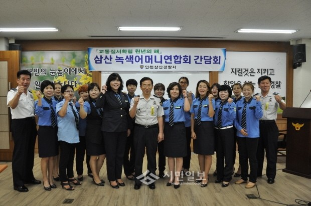 22일 인천삼산경찰서는 삼산서 2층 소통실에서 2학기 개학철을 맞이하여 삼산녹색어머니연합회원을 초대해 어린이들의 교통사고 및 예방홍보활동에 대해 간담회를 열었다. 사진은 간담회참가자들의 모습.