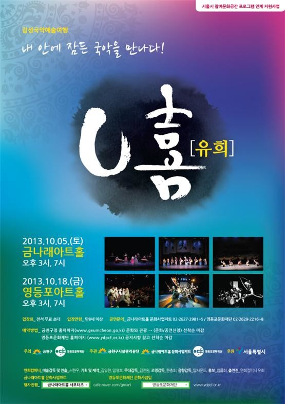 서울특별시 금천구시설관리공단(이사장 이옥형)은, 서울시 참여문화공간 프로그램 연계 지원사업에 선정되어, 영등포문화재단의 영등포아트홀과 함께 일상을 바꾸는 전통공연 ‘U-喜[유희]’를 선보인다.