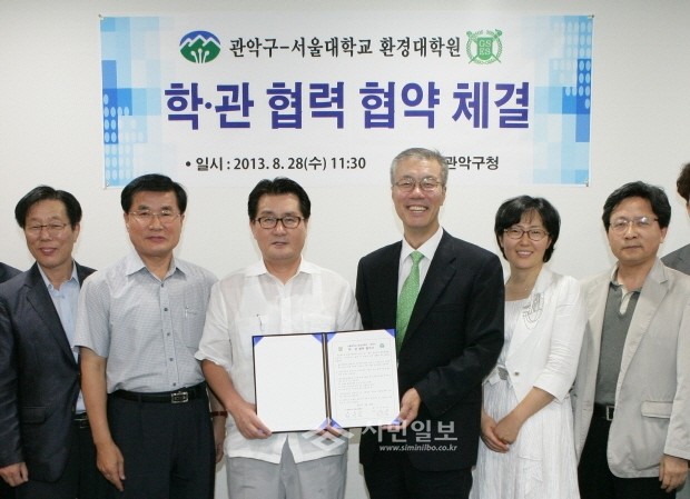 28일 서울 관악구는 서울대학교 환경대학원과 관악구 도시, 환경관련 분야 전반에 걸쳐 유기적인 협력체계 구축을 위한 양해각서(MOU)를 체결했다. 사진은 관악구청에서 열린 협약식 체결 모습.