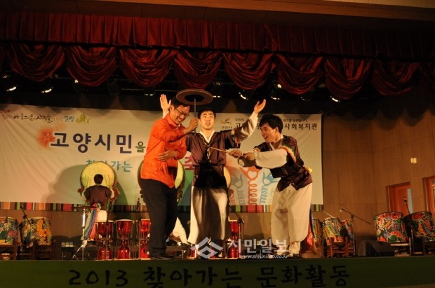 지난달 29일 고양시 원당종합사회복지관은 성라초등학교 체육관에서 지역주민 600여명과 함께 온가족이 함께 즐길 수 있는 ‘제3회 성사동문화축제’를 개최했다. 사진은 모자돌리기 공연 중 최성 고양시장이 함께 참여하고있는 모습.