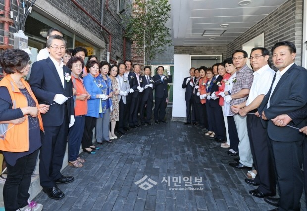 [시민일보]지난3일 서울 종로구의회 김복동 의장과 의원들이 그동안 제대로 된 사무실 없이 운영해왔던 효행본부의 현판식에 참석했다. 사진은 현원서동(창경궁로 33)에서 열린 현판식에 참여한 종로구의회 의원들이 효행본부의 입주식을 거행하는 모습.