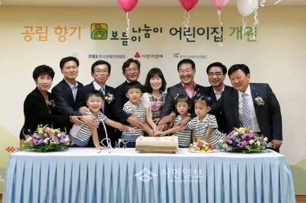 경기 인천시 남동구(구청장 배진교)는 5일 보육실과 유희실, 조리실 등의 최신 시설을 갖춘 22번째 공립 보육시설인 ‘향기보듬이나눔이어린이집’ 개원식을 했다. 사진은 어린이집 아이들과 관계자들이 개원 축하 케익을 자르고 있는 모습.