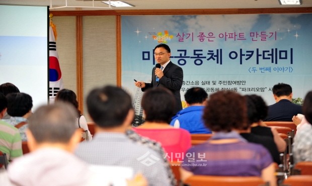 [시민일보]지난 5일 서울 송파구청 대회의실에서 아파트 입주자 대표 및 입주민을 대상으로 '2013년 살기좋은 아파트 만들기' 교육을 했다. 사진은 층간소음으로 인한 분쟁 사례와 국내외 동향을 통한 아파트내 층간소음 해결방안을 전문가가 강의하는 모습.