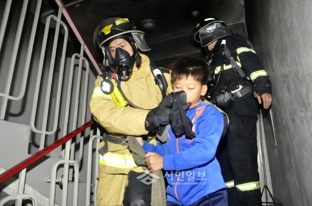 [시민일보]서울 구로소방서는 지난 8일 밤 12시11분에 고척동 아파트에서 발생한 화재를 진압했다. 이번화재로 인명피해는 없었으며 총 1300만원의 재산피해가 발생했다. 사진은 소방대원들이 화재가 난 아파트에서 주민을 대피시키는 모습.