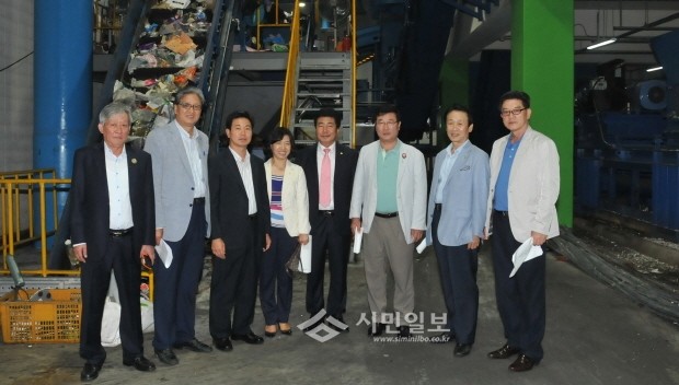 서울 강남구 복지도시위원회(위원장 김명옥) 위원들은 지난9일 율현동‘강남환경자원센터’를 현장방문해 재활용품 선별시설 및 생활폐기물 압축 등 주요시설을 점검했다. 사진은 재활용품 선별시설장에서 기념촬영하는 의원들의 모습.