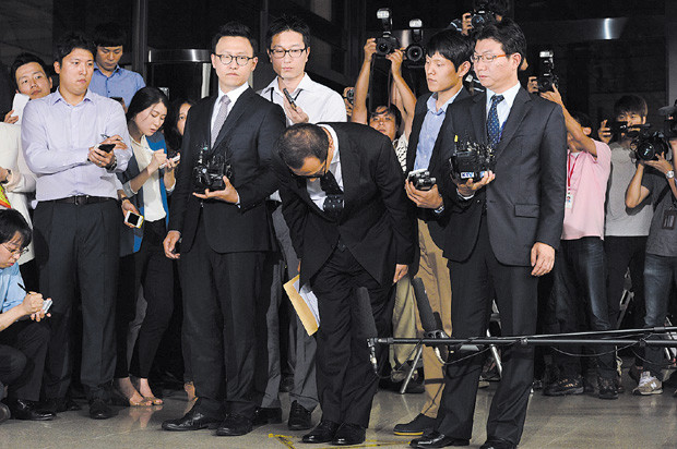 전두환 전 대통령의 장남인 전재국씨가 10일 오후 서울 서초구 중앙지방검찰청 앞에서 대국민 사과문 발표 후 머리숙여 인사하고 있다.