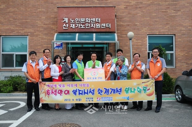 한전 인천본부와 이학재 의원이 마련한 방역 봉사활동에 참여한 관계자들이 행사를 마친 후 기념촬영을 하고 있다.