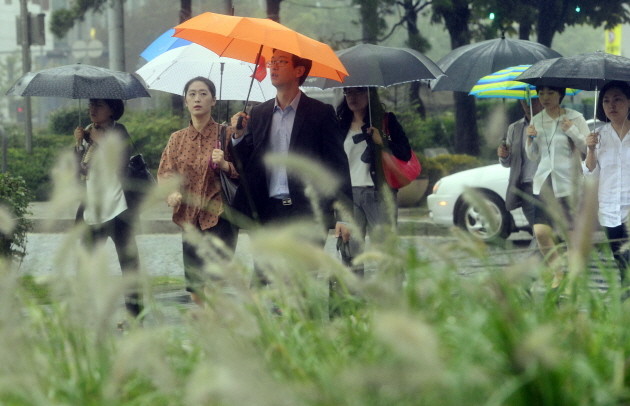 가을비가 내리고 있는 11일 오전 서울 광화문역 인근에서 시민들이 출근길 발걸음을 옮기고 있다.