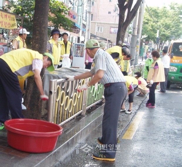 서울 구로구는 여름철 강우, 먼지 등으로 오염된 안전펜스, 보도육교, 방음벽, 방호울타리, 가로 판매대 등 도로상의 각종 시설물에 대해 물청소 차량을 대거 투입해 대청소를 이달 말까지 실시한다. 사진은 도로를 청소하는 모습.