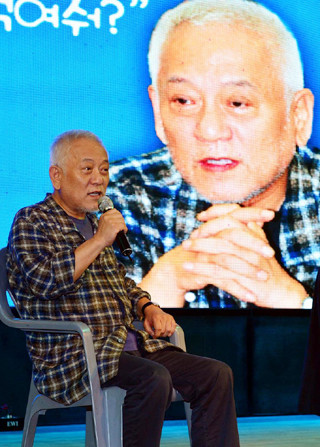 28일 오후 광주 서구 유스퀘어광장에서 민주당 김한길 대표가 ‘민주주의가 밥먹여줘? 노숙자 김한길의 토크콘서트’를 진행하고 있다.